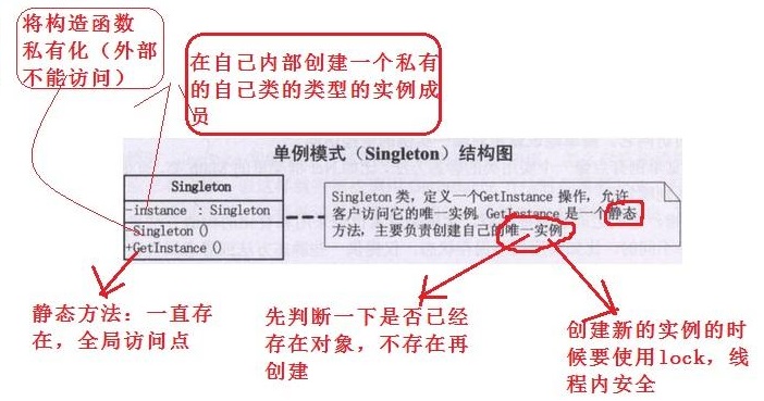 首先,能够想到的最简单的实现是,把类的构造函数写成private的,从而保证别的类不能实例化此类,然后在类中提供一个静态的实例并能够返回给使用者。这样,使用者就可以通过这个引用使用到这个类的实例了。