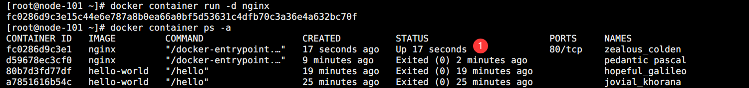 - 使用 ps 查看容器的时候,如果不使用 -a 参数是看不到状态属于 Exited 的容器的。