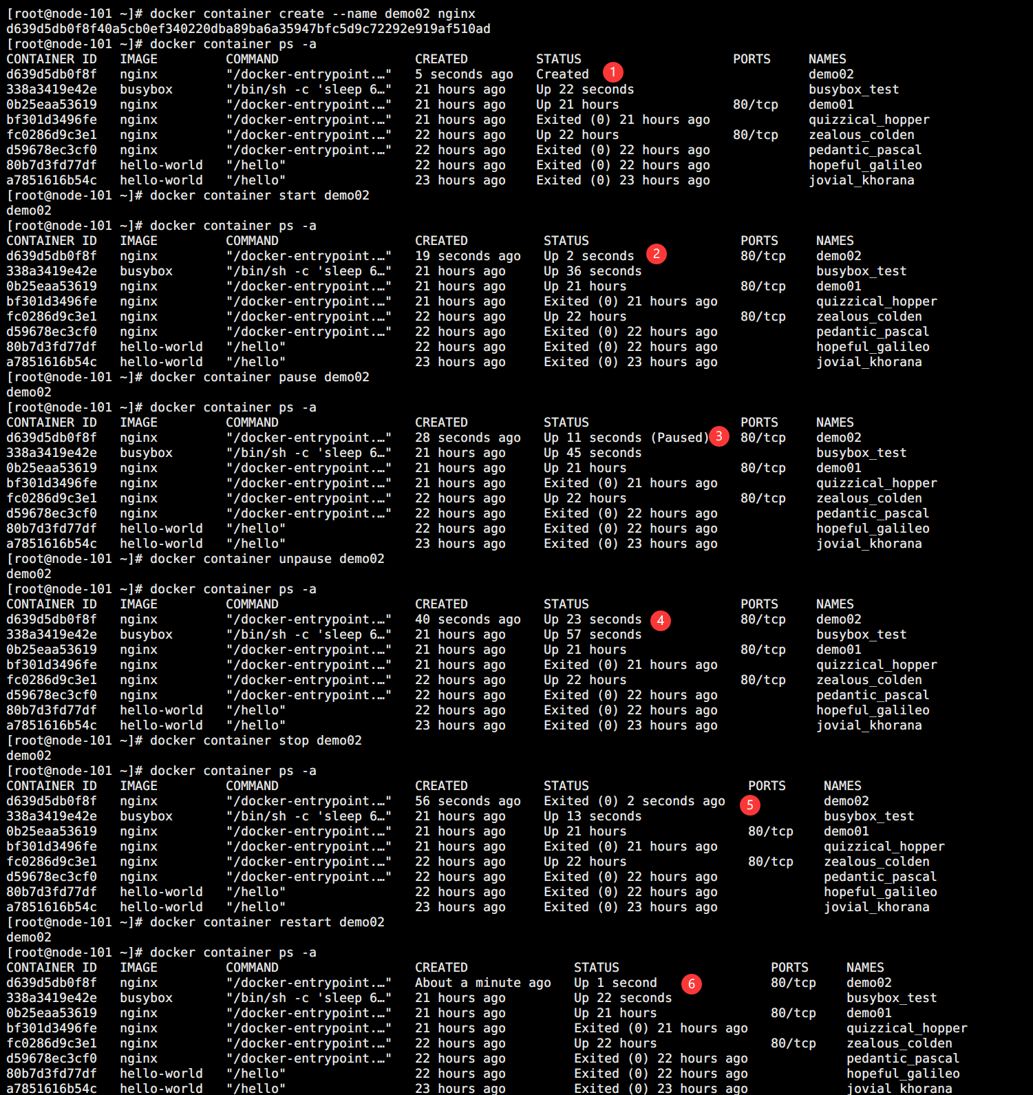 通过该命令可以查看容器的运行时状态,如 Up,Exited 等: