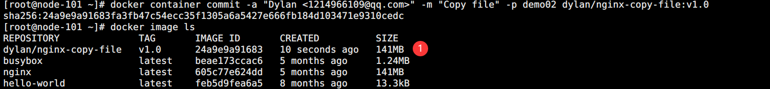 1 | docker container commit -a "Trover <admin@buerya.cn>" -m "Copy file" -p demo02 trover/nginx-copy-file:v1.0 |