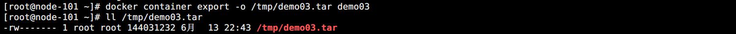 1 | docker container export -o /tmp/demo03.tar demo03 |