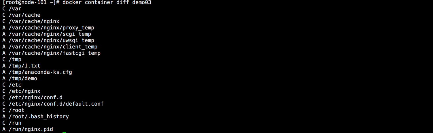 该命令可以查看容器目前的文件和文件系统本身的差异: