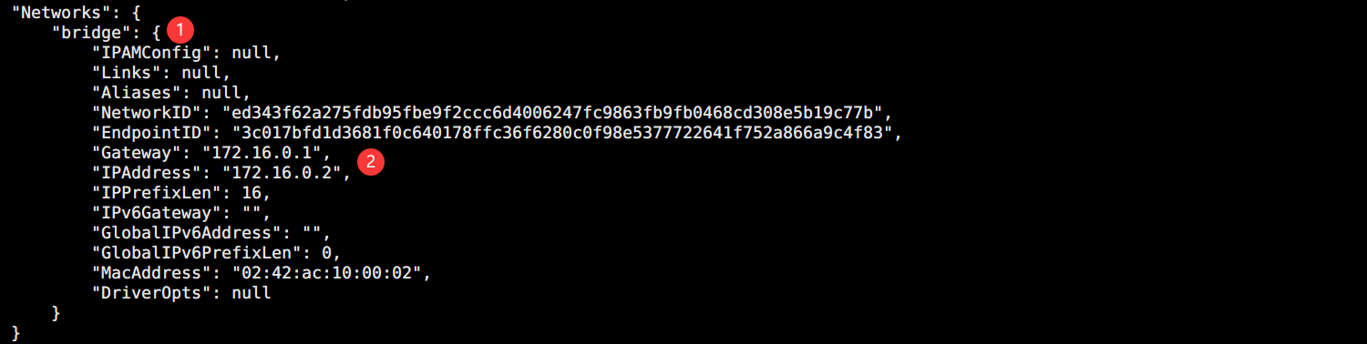 本文由于我们在配置 docker 时有另外指定了 IP 网段,所以这里看到的网段为:172.16.0.0/16 而不是 docker 默认的网段 172.17.0.0/16。