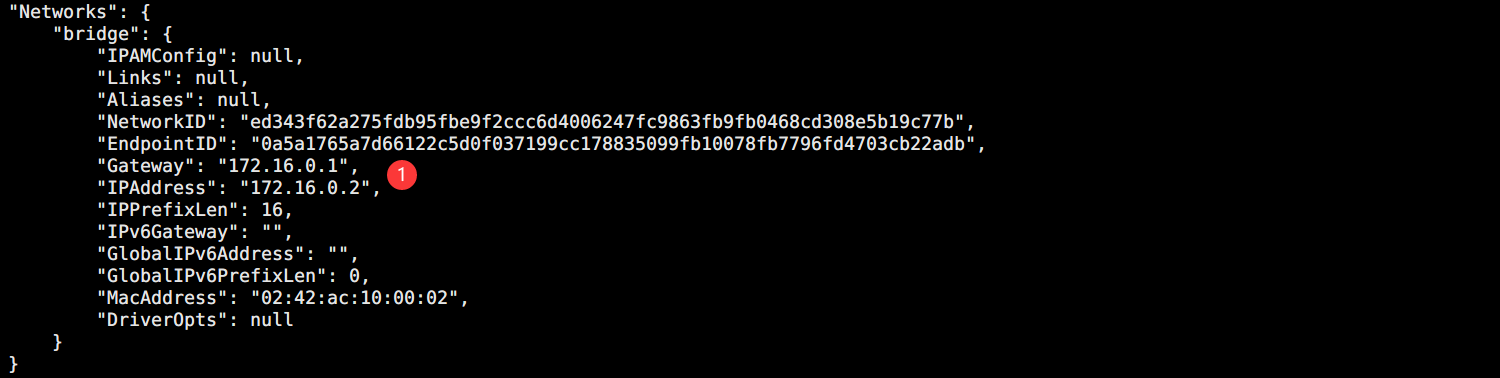 docker0 网桥的 IP 一般会是 docker 配置网段的第一个 IP,且这个 IP 会作为 bridge 网络模式的容器的网关使用。