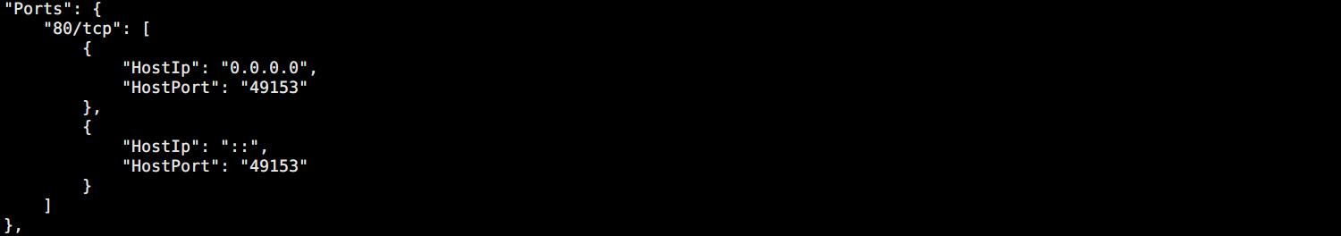能够看到容器内部 nginx 的 80 端口以及被随机映射到了 49153 端口,可以使用宿主机加这个随机端口在浏览器进行访问。